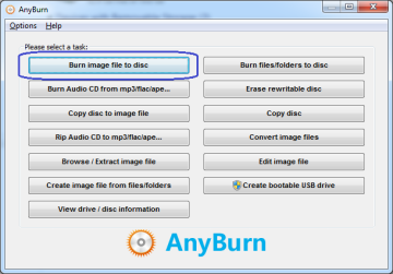 1.运行AnyBurn,然后单击“将图像文件刻录到光盘”。