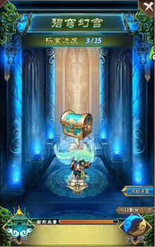 碧穹幻宫是《刀剑诛魔录》中比较有特色的一个系统,凝液初期开放,总体难度适中。进入碧穹幻宫展现在大家面前的是一个纵深延长的寒冰宫殿,道友在逐步向前探索的过程中会碰到怪物或者其他道友的阻拦,需要逐一挑战才能通关,总计15关。关卡中的道友都是调用游戏内真实道友的数据,且抽取的道友境界随关卡数的增加而提高。如图所示,点击继续探索,则显示出对应的敌人,点击敌人形象即可进行挑战。