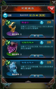关卡胜利之后有几率获得对应的碧穹珠奖励,同时闯关获胜,还有可能获得法宝碎片、强化材料等超值奖励,碧穹幻宫是道友进行资源原始积累的重要方式。碧琼珠可在界面左下方的天宫中兑换各种超值道具。