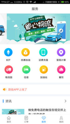 路链app,一个服务于企业的物流助手。这里有物流的实时查看,货运的订单内容等等,查看ETC,优惠加油功能,有需要的快来下载。