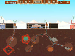 在小镇拍卖会上租土地,寻找石油。建造钻井设备,创建一个高效的管道网络,挖出石油并将它们存储在筒仓中。在最佳时间出售石油,使利润最大化。而后,购买镇上的基本升级以应付岩石、天然气和冰块。在竞标中获得比竞争对手更多的股份,成为新市长。