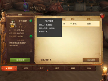 3.公会首页会显示创始人,公会公告,成员人数,学徒人数,在线情况等信息