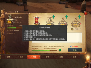 5.内政界面显示一些公会奖励信息和公会建筑操作