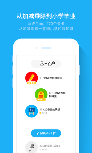 系统全面,170个关卡,从加减乘除一直到小学代数知识;