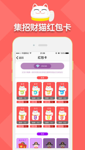 集招财猫红包卡,会定时产出现金红包,每隔几分钟就有新的红包可收,源源不断抢到手软!