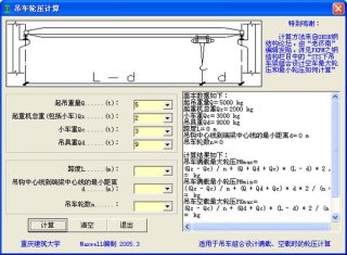吊车轮压计算工具是一款专门计算吊车轮压的计算器。有了这款软件之后,就算你不知道轮压计算公式,你也可以计算起重机的最小、最大轮压计算结果。
