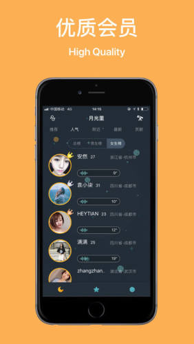 月光里官方iPhone手机版是一款非常火热的婚恋交友应用软件,这里拥有最安全的用户信息认证系统和最为时尚好玩的交友模式,让你轻松约到女神/男神,在这里你可以畅所欲言,既简单又轻松,快来下载体验吧。