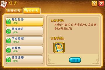每日任务是每日必做的几件事。每日任务要求比较简单,把自己每天必做的几件事完成后,基本也就完成了每日任务。每日任务的奖励是声望,所以非常重要,声望的积累就靠每日任务了。