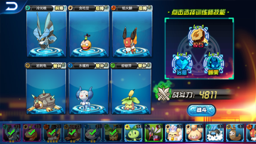 战斗之前,玩家需要在布阵界面选择上阵的精灵和训练师技能。