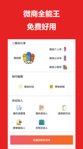 微商全能王app以帮助广大微商加速成长为微商大师为目标,以成为手机微商助手为己任,不断前行的微商通用微信自动化操作软件。