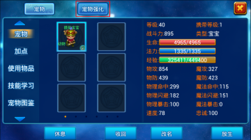 进行战斗:在面板中选择自己希望挑战的宠物进行挑战。