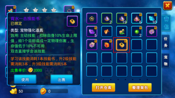 需要一本相关技能书,双击学习,然后就可以在宠物"技能学习"面板中找到了。点击宠物"技能学习"里,"我的宠物"中的相关宠物,点击右下已学会的宠物技能,即可完成学习。宠物只能学习自身同种类技能和通用技能。