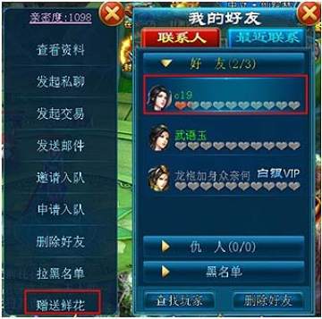 3、魅力值高的男生女生,可以分别荣登全服的护花榜排行与鲜花榜排行。