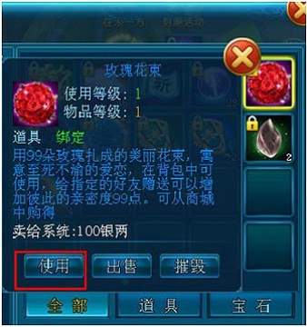 1、打开背包,点击对应的鲜花道具进行使用,即可进入赠送画面