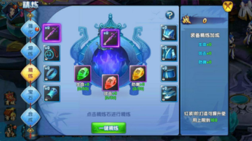 用道具提升装备属性,提升战力,消耗精炼石,提升装备精炼属性;每件装备可使用的精炼石有数量上限;装备红装打造后,提升精炼石使用上限。