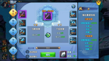 强化人物装备,提升战力;用强化材料强化装备,获得幸运值,幸运值满后强化成功并获得属性加成;橙装前强化上限+15,红装强化上限+20;强化套装到一定条件有额外属性加成。
