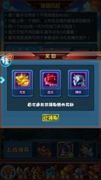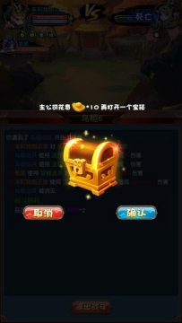 战斗胜利后,可进行开宝箱,宝箱有两种:免费宝箱和元宝宝箱。宝箱内具有神秘宝物,关卡越往后,可获得的宝箱价值越高。