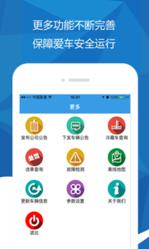 车辆自检:随时远程监测车辆的发动机运行状态、燃油系统、电路系统、水路系统,解 读故障代码,保障车辆发动机状态良好。