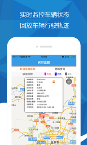 实时定位:通过GPS、北斗定位,GPRS通讯传输,随时随地掌握车辆位置;