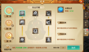 天赋分为三大类:攻击、防御、通用。