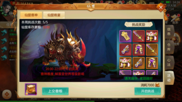 仙盟活动之一:仙盟兽神。晚上八点到十点才能开启挑战,而且只能由盟主开启哦~奖励是各种高阶的装备和贡品,参与的成员要记得打之前最好洗个脸哦!