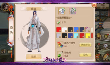 对时装进行染色,即可改变时装颜色,使时装更具个性化,《御剑情缘》准备了32种颜色供玩家选择。