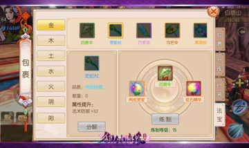 分解法宝可获得法宝精元,使用法宝精元可前往兑换炼制法宝必须的材料。