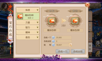 玩家可以通过宝石合成系统获得等级更高的宝石,2颗低阶宝石合成后变为1颗宝石,等级提升一阶。