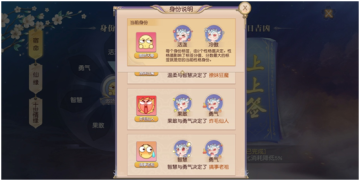 大家根据剧情,可以选择以不同的方式回答对话内容,每个选择都在记录大家的性格变化,如下图可以以活泼和温柔的方式回答,活泼和温柔就是两个性格值,除此之外,还有冷傲、勇气、智慧、果敢、沉稳性格值,2个性格值决定了玩家的身份标签(就是性格)。
