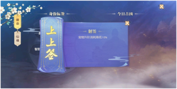 宿命中,每天都可以“求签”,求签就是看脸了。不过还好,我到现在都是上上签,增加一些buff,如宠物升阶消耗降低10%、 装备强化消耗降低5%等等。自求签后能维持24小时。求签不用消耗任何道具,大家一定要记住每天“求签”。