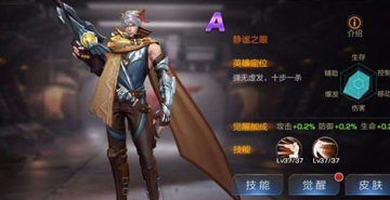 两个技能,一个是逃脱一个是狂风之息,逃脱是位移+隐身的技能,每次后跳会隐身一段时间,还会释放一个陷阱,狂风之息就是输出技能,一键锁敌,全屏秒杀,高伤害自动锁定前方英雄,一发入魂,如果配合熔岩狙击枪不知道威力有多厉害,推荐是搭配两把狙击枪,一把连狙,一把单狙,这样这个英雄就非常强势了,有着距离越远伤害越高的技能,还有狙击枪专精的被动叠加,所以伤害可以叠加到非常高,瞬发输出。