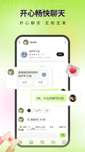 【聊天互动】和感兴趣的人边聊边玩,还可以语音、视频互动!