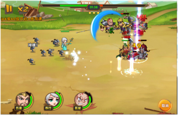 咱们首先来熟悉一下核心战斗吧,武将分为“力智敏”相生相克,武将怒气回满即可释放大招,玩家可自由操作大招释放的范围和时机,精准攻破对方防守线。