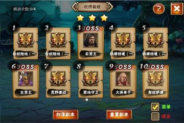 最终boss,张角。其技能【太平要术】能对群体造成大量伤害,还附加10%的吸血效果。击败这个boss需要注意的就是中后军要撑住他的第一发技能(只需给中后军的替换到30级的防具然后稍微强化一下基本没问题),然后利用输出碾压在他第二发技能出来前收拾掉,这个需要将中军的武器强化满,然后守军的防具也需要强化到高等级,就能轻松过关啦!