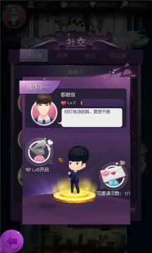 当玩家与NPC的好感度达到一定等级后,玩家消耗约会道具可以发起对NPC的约会。发出邀请后,玩家要在规定时间内换装并前往指定地点,不同NPC有各自的喜好属性的服饰以及单品,NPC对约会的满意度随服饰属性提升,若穿着NPC喜好的单品,则约会满意度大幅提升。换装结束后,玩家点击“前往”可前往约会界面,进入约会界面后,根据邀请方对玩家服饰的满意程度、玩家是否带邀请方喜欢的礼物,形成邀请方对该次约会满意程度的基础值。在不同的场合,有不同的约会事件可以做,不同的事件消耗不同的体力或金钱。点击约会事件气泡,会扣除玩家的体力/金钱,增加NPC的满意度,满意度进度条满时,约会结束。若进度条一直未满,则规定时间到达后,约会结束。约会事件结束后,根据对此次约会的满意度,NPC对玩家有不同的好感度提升和礼物回馈。