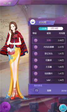 2. 时尚榜左侧显示人物的头像,右侧显示时尚榜的排名情况及玩家所在位次。