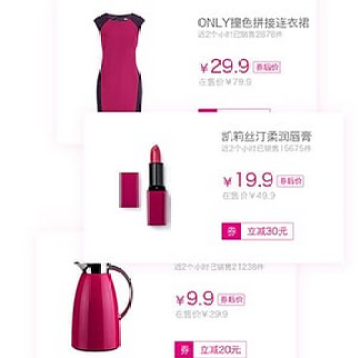 通过数据监控,推荐最近两小时全平台领券折扣销售最火爆的商品。