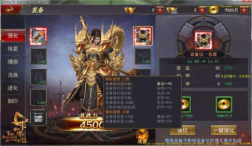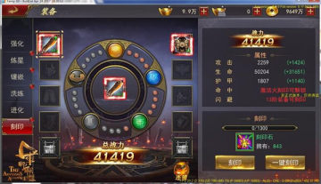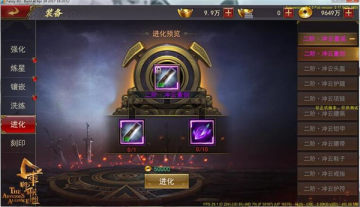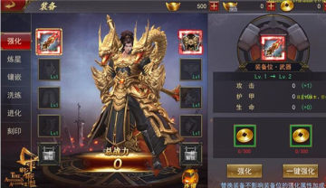 装备系统包括强化系统、炼星系统、镶嵌系统、洗炼系统、进化系统、刻印系统以及装备套装。