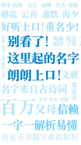 2.【取名意蕴】:婴儿起名,宝宝起名,小孩取名,新生儿起名字,结合诗词、楚辞、论语起名、英文起名、唐诗起名、宋词起名、国学起名,继承传统命理起名学优点,协助为宝宝起名取名,姓名分析,成人改名,让你的名字不输名人明星,响亮大气。