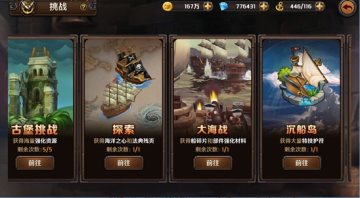 3. 挑战副本:多样的玩法,可以提供给各位海盗们丰富的日常娱乐,在您探索加勒比海的同时,也不要忘记去那些藏宝洞,古堡挑战一番,说不定还有一番奇遇!当然咯,有财宝的地方伴随着战斗!海盗们的战斗总是那么强烈,震撼人心的,大海战是各位海盗们不容错过的玩法之一!