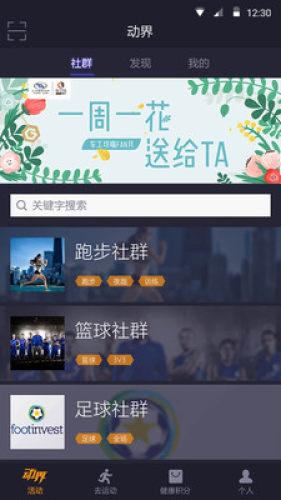 动界app是一款非常实用的运动健身软件,在这里拥有丰富的运动社群,涵盖了每一种体育运动,你总能在这里找到一款适合你的社群。有兴趣锻炼健身的朋友赶紧来下载吧。