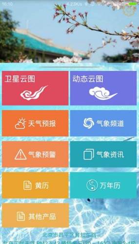提供天气预报,中国气象频道直播,雷达反射图,气象资讯,黄历,万年历等功能。