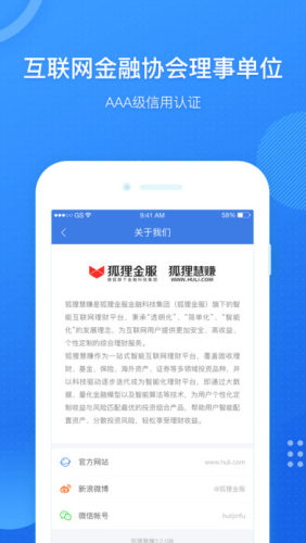 狐狸慧赚是搜狐旗下金融科技集团狐狸金服推出的一站式互联网综合理财平台,秉承“透明化”、“简单化”、“智能化”的发展理念,为互联网用户提供更加安全、更好收益、个性定制的综合理财服务。