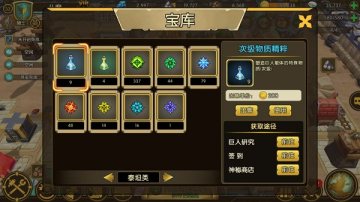3,泰坦类:是用于泰坦升级,升阶所需的材料;包含符石、不同品质的精粹和核心。符石可以大量通过巨人攻城入侵战斗中获得,精粹与核心主要通过研究巨人获得。