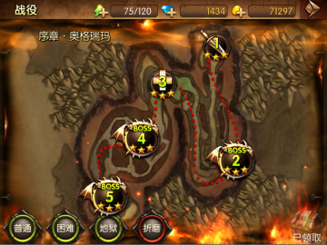 《钢铁部落》战役为主线剧情副本,主要产出经验、装备、招募材料等