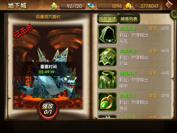 每个地下城需消耗较多体力进入,完成副本后,副本进入冷却时间,冷却时间结束后可重新挑战。