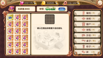 有了服装肯定还得有房子跟家具!点击主界面下方家私按钮即可打开家私界面,可在此升级家私等级。