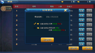 选择创建新帮派,输入帮派名,选择帮派等级后确认,帮派创建成功。