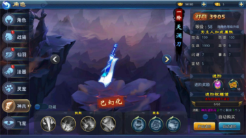达到特定阶数的神兵会解锁一个新的技能,神兵技能为状态技能,随机触发效果。