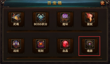 角色达到斗宗境界可开启魂器功能,点击主界面右下角功能图标“百宝箱”可打开界面